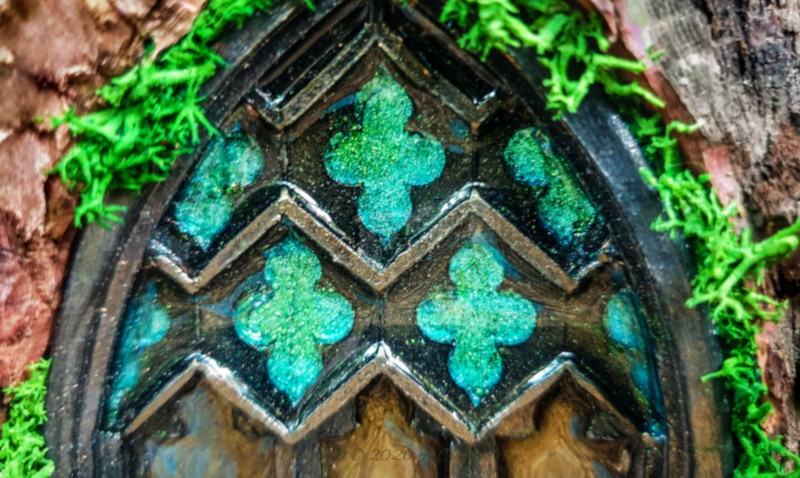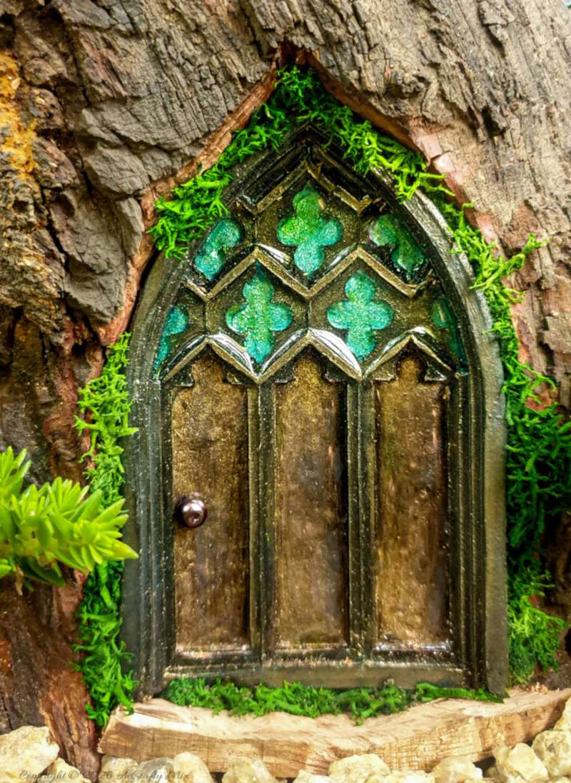 Okay, so that’s the medieval door done. Excluding baking time, it took me about 20 minutes. Oh, BTW, if you can’t find the right mold and don’t want to play around with resin, have a look at this fairy door with a stained glass window. It uses popsicle sticks and alcohol inks to create a similar effect.